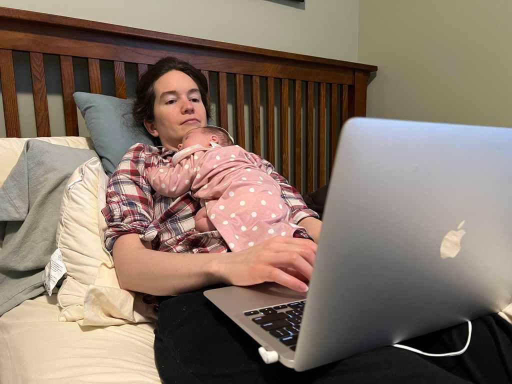 The baby monitor beside me crackled, and I squinted at the video. My little one was stirring. Before I could get to my feet, her cries had zoomed under the door and filled the room. The timer on the pump showed eight minutes of the 30-minute pump session had elapsed.